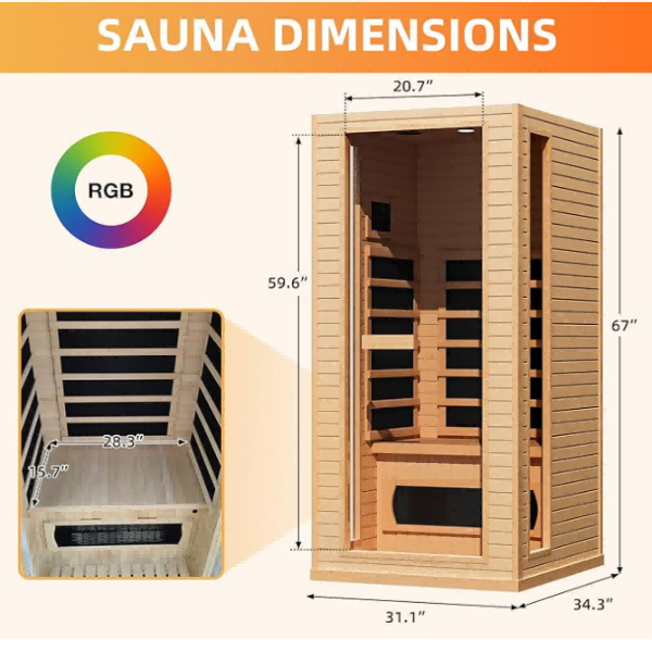 【Ausreichende Haltbarkeit】 Unsere Heim -Sauna besteht aus dauerhafter und hypoallergener kanadischer Hemlockholz und bietet eine hervorragende Wasserbeständigkeit und Isolierung. FSC-zertifiziertes Hemlockholz ist nachhaltig bezogen und knackt nicht, selbst wenn er erhitzt wird. Hinweis: Wenn Sie einen starken Geruch bemerken, lüften Sie unbedingt vor dem Gebrauch. Es ist nur der natürliche Duft von Kiefern, es ist völlig sicher und wird Ihre Gesundheit nicht beeinträchtigen.