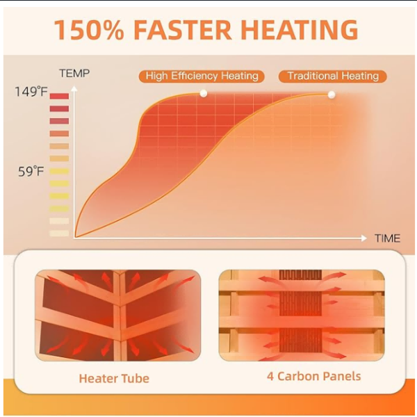 【Effiziente Heizungstechnologie】 Mit 4 Kohlenstoffpaneele und 1 Carbonrohr ausgestattet und unsere 1-Person-Infrarot-Sauna 360-Grad-Surround-Heizung bietet und sogar die Wärmeverteilung gewährleistet. Normalerweise erhitzt es sich in nur 10-15 Minuten und ermöglicht es Ihnen, Ihre Sauna-Erfahrung unverzüglich zu genießen.