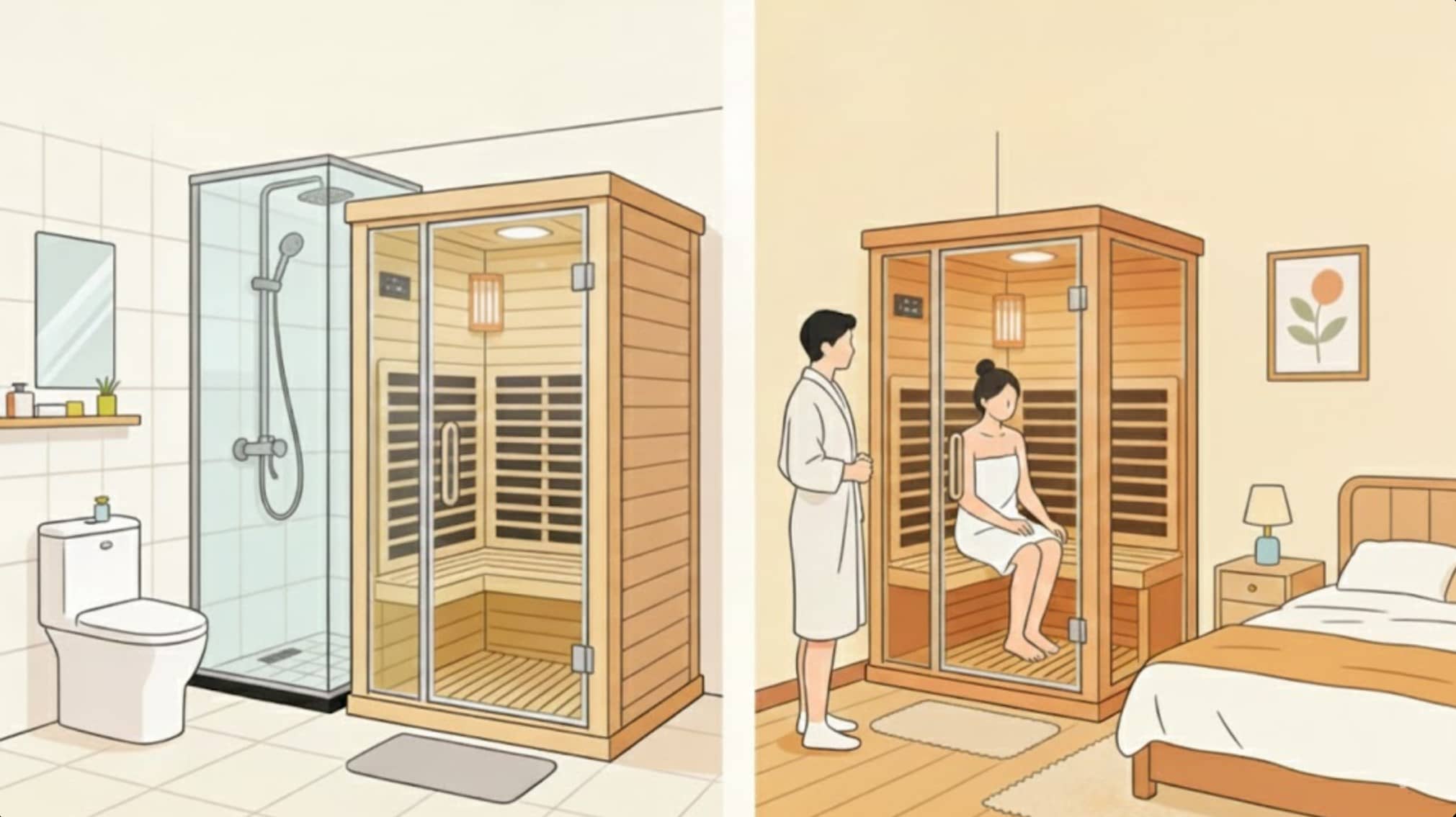 Die beiden Arten von Saunen schließen sich nicht gegenseitig aus und können je nach Jahreszeit in Kombination genutzt werden: Nutzen Sie im Sommer Ferninfrarotsaunen (trocken und nicht stickig, vermeiden Sie die Überlagerung feuchter Hitze); Nutzen Sie im Winter Dampfsaunen (warm und feuchtigkeitsspendend). Familien mit Beschwerden können einen „Teilrenovierung + flexible Ergänzung“-Plan übernehmen: Installieren Sie ein Dampfsaunamodul im Badezimmer und platzieren Sie eine kleine Ferninfrarotsauna im Schlafzimmer/Balkon, um den Gesundheitsbedarf optimal abzudecken.