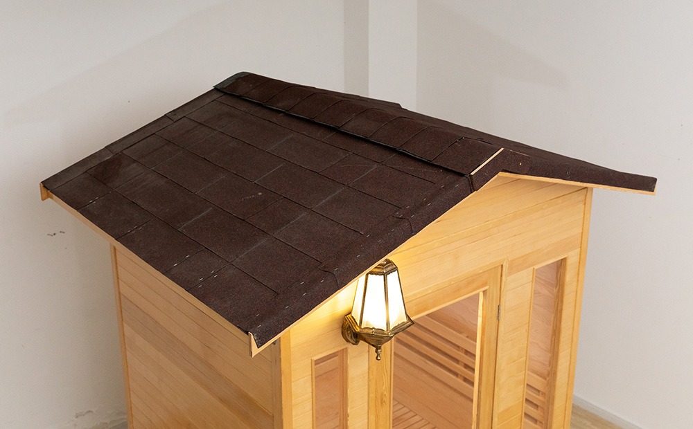 Das Dach verfügt über eine mehrschichtige wasserdichte und sonnenschützende Struktur. Die verbreiterte Traufe kann effektiv verhindern, dass Regenwasser die Hemlocktanne erodiert, und gewährleistet so den stabilen Einsatz des Produkts in verschiedenen Außenumgebungen. Die Gesamtform kombiniert geschickt die natürliche Textur der Hemlocktanne mit der oberen Fengshui-Glastür und der Retro-Wandlampe und wird zu einem „nutzbaren Landschaftselement“ im Innenhof, das dem Außenbereich einen einzigartigen Charme verleiht.