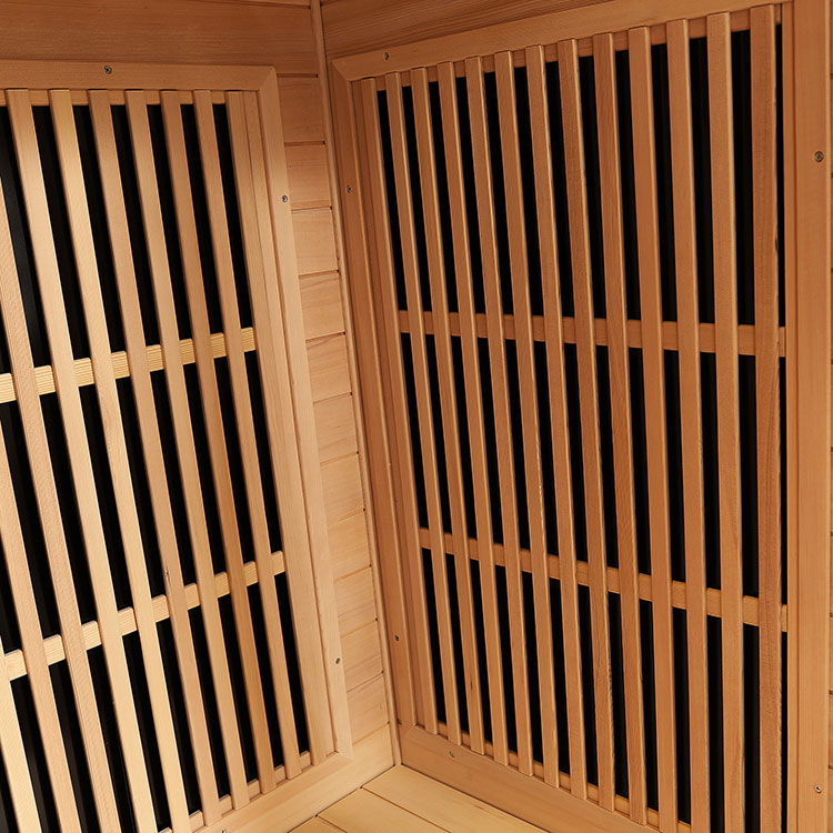 Eine Infrarotsauna oder Ferninfrarotsauna verwendet Infrarotlicht, um Wärme zu erzeugen. Auch als Infrarottherapie bekannt, erwärmen die Infrarotlampen den Körper von innen, was bedeutet, dass Ihr Körper durch die Lichtwellen, die Ihre Haut durchdringen, direkt erwärmt wird. Stellen Sie sich das so vor, als ob Sie an einem sonnigen Tag nach draußen gehen und die Sonne Ihre Haut wärmt. Zwei Personen Massivholz-Ferninfrarot-Trockendampfbad funktioniert ähnlich, um Ihren Körper zu wärmen, Ihre Muskeln und Nerven zu erreichen und ist absolut sicher in der Anwendung.